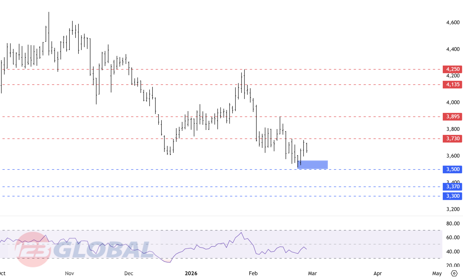 Hai phiên hồi trước đó mang tính kỹ thuật và đã chững lại khi tiếp cận vùng 3,730. Việc giá không thể duy trì đà tăng và quay đầu giảm củng cố vai trò kháng cự của khu vực này.